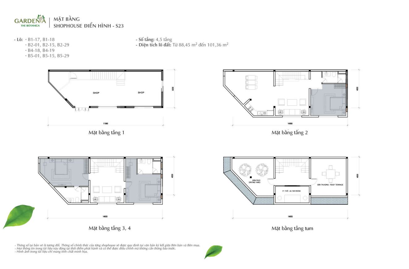 MẶT BẰNG SHOPHOUSE BOTANICA - VINHOMES GARDENIA MỸ ĐÌNH